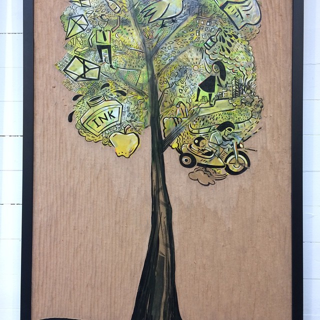 It was great to be back at the Rumble House to host the weekly Wednesday night Live Art Rumble and Auction. If you’ve never been down to either the old Gorilla House Gallery or Rumble House, the action starts at 7:00 PM with the random selection of the Three Items of Inspiration. Visiting artists are allowed to pick any or all of the nightly themes to incorporate into their work over the next two hours and I can tell you, sometimes they stretch all manner of credulity, but that just makes it even more fun to watch! The auction then starts at 9:00 PM – artists pick their own minimum bids, occasionally as low as $5, though many works do not stay there for long…